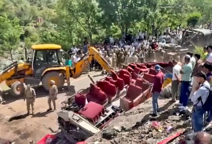 आरयू वेब टीम। जम्मू-कश्मीर के उधमपुर जिले से सोमवार को भीषण सड़क हादसा हो गया है। यात्रियों से खचाखच भरी प्राइवेट बस अनियंत्रित होकर 70 से 80 फीट गहरी खाई में पलट गई। इस हादसे में 22 यत्रियों की मौत हो गई है, जबकि करीब 40 यात्री घायल हुए हैं। सूचना पर पहुंची पुलिस ने राहत बचाव कर घायलों को इलाज के लिए अस्पताल में भर्ती कराया।