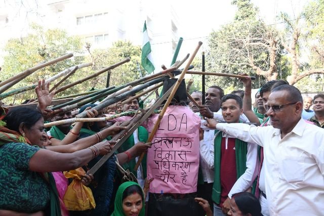 भारतीय किसान यूनियन राष्ट्रीयतावादी अराजनैतिक (बीकेयूआरए) के नेतृत्व में सुबह से ही आज किसान एलडीए के गेट नंबर दो पर जुटने लगे थे। कुछ ही देर में लाठी-डंडों के साथ ही खेती में काम आने वाले धारदार औजार से लैस महिलाओं समेत सैकड़ों किसान वाहनों में भरकर प्राधिकरण पहुंच गए। इस दौरान आक्रोशित किसानों ने प्राधिकरण व उसके अधिकारियों के खिलाफ मुर्दाबाद समेत कई आपत्तिजनक नारे भी लगाने शुरू कर दिए।