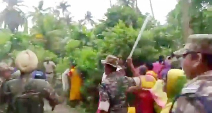 मतदाताओं पर लाठीचार्ज करते सुरक्षाबल।