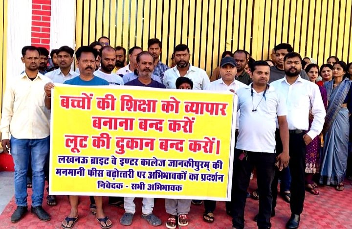 बता दें कि लखनऊ के कुछ निजी स्कूलों पर नए सत्र से कई गुना फीस बढ़ाने के आरोप लग रहे हैं। सोमवार को जानकीपुरम के ब्राइट वे कॉलेज में भी पेरेंट्स ने स्कूल प्रशासन पर मनमानी तरीके से कई गुना फीस बढ़ाने का आरोप लगाते हुए पहुंचे। इस दौरान पहले पेरेंट्स ने स्कूल प्रिंसिपल से बात करनी चाही, पर स्कूल के अड़ियल रवैये को देखकर मेन गेट के बाहर आकर खड़े हो गए। देखते ही देखते बड़ी संख्या में पेरेंट्स गेट के सामने जुट गए। इनमें महिलाएं भी रही।