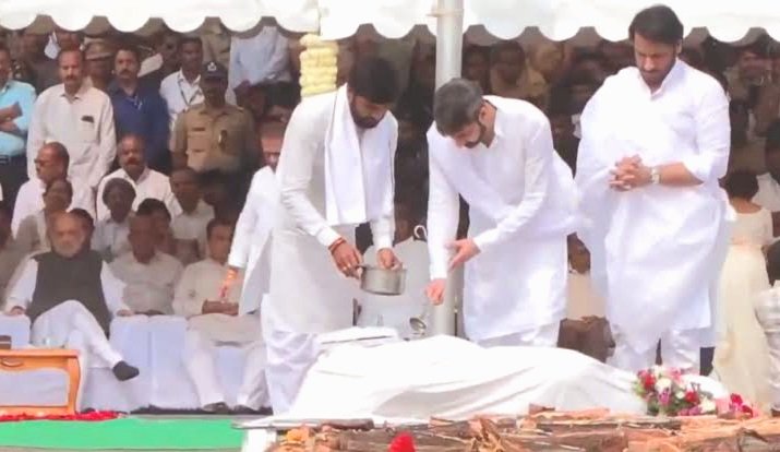 आरयू वेब टीम। महाराष्ट्र के उपमुख्यमंत्री और एनसीपी नेता अजित पवार पंचतत्व में विलीन हो गए। राजकीय सम्मान के साथ अंतिम संस्कार संपन्न हो गया। अजीत पवार के बेटे पार्थ पवार और जय ने पिता को मुखाग्नि दी। बारामती के विद्या प्रतिष्ठान ग्राउंड में उनका अंतिम संस्कार किया गया। केंद्रीय गृहमंत्री अमित शाह, भाजपा अध्यक्ष नितिन नवीन, राजनीतिक क्षेत्र के कई बड़े नेता उनके अंतिम संस्कार में शामिल हुए।