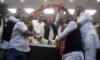 योगी सरकार पर हमला जारी रखते हुए संजय सिंह ने कहा सवाल यह है कि अगर भारत माता के बेटों के साथ अन्याय होगा तो भारत माता की जय कैसे होगी? हिंदुओं को एकजुट करने की बात करने वाले लोग बताएंगे कि क्या पिछड़े वर्ग, दलित और आदिवासी हिंदू नहीं हैं। क्या उन्हें संविधान में दिए गए हक और आरक्षण का अधिकार नहीं मिलना चाहिये। देश में 50 फीसद आरक्षण पिछड़ों, दलितों और आदिवासियों के लिए है। दस प्रतिशत आरक्षण सामान्य वर्ग के गरीबों के लिए है। इसके बाद बची नौकरियां सामान्य वर्ग को दी जा सकती हैं, लेकिन उत्तर प्रदेश में भर्तियों में घोटाले हो रहे हैं। “